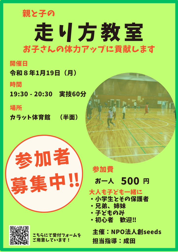 開催日:1月19日(月)時間:19:30~20:30 (受付19:00~ 実技60分)場所:豊明市共生交流プラザ カラット 参加費:一人 500円担当指導:成田主催:NPO法人 創Seeds
